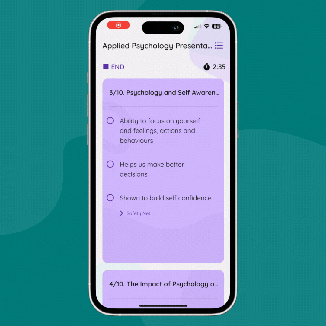 “I have been able to time myself as well as list my points in bullet points. A lot of presentations must be a certain duration, so that feature is definitely helpful. The bullet points act as a prompt - it helps me not read off a script and actually look up.”